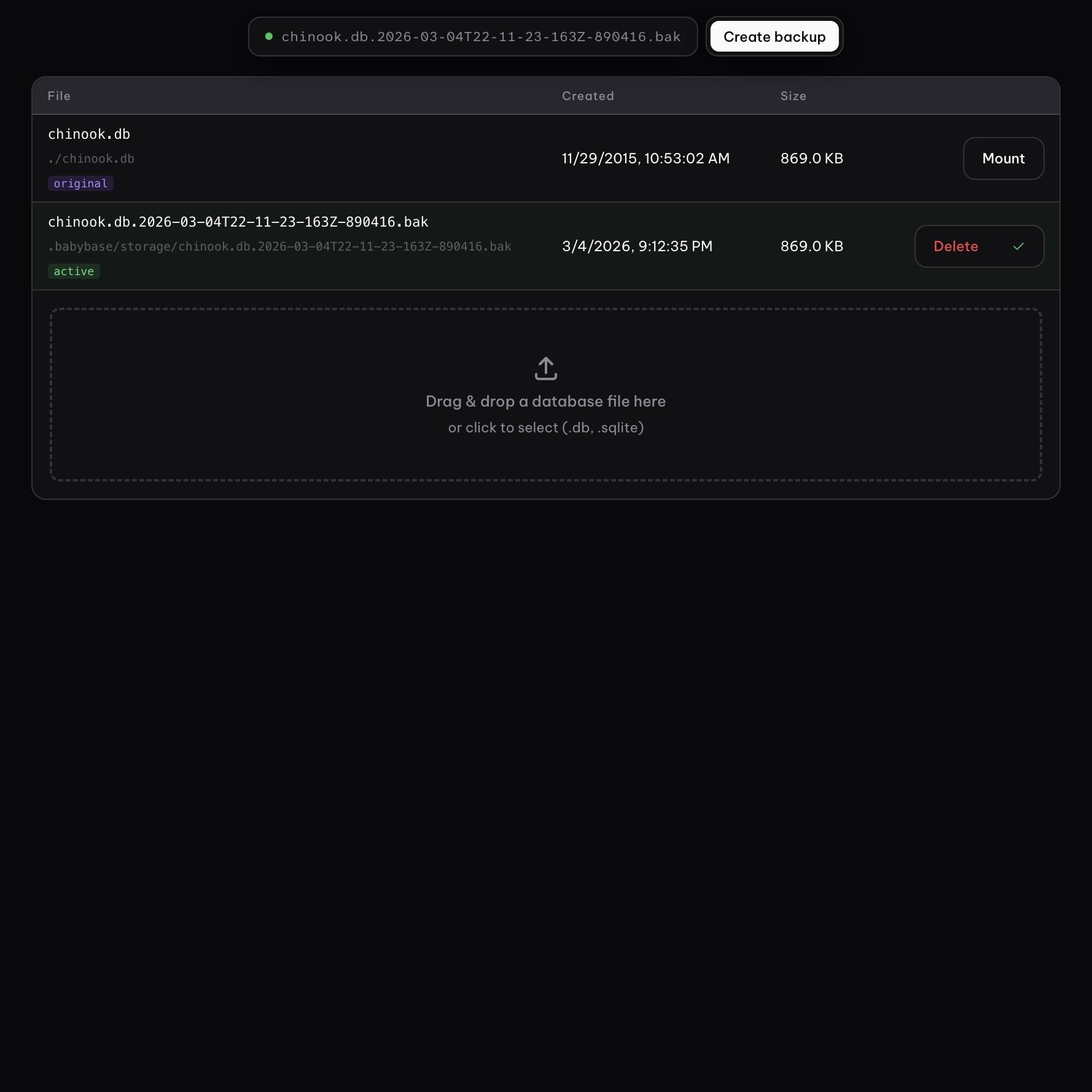 No config, no setup. Point it at any .db file and your browser opens automatically. Great for quick exploration or one-off tasks.